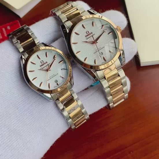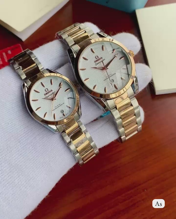 Surprise your loved one with this Omega Couple Watch set, designed for timeless elegance and daily sophistication. Crafted with good quality materials and a working date feature, this pair is perfect for couples who appreciate classy, matching accessories.