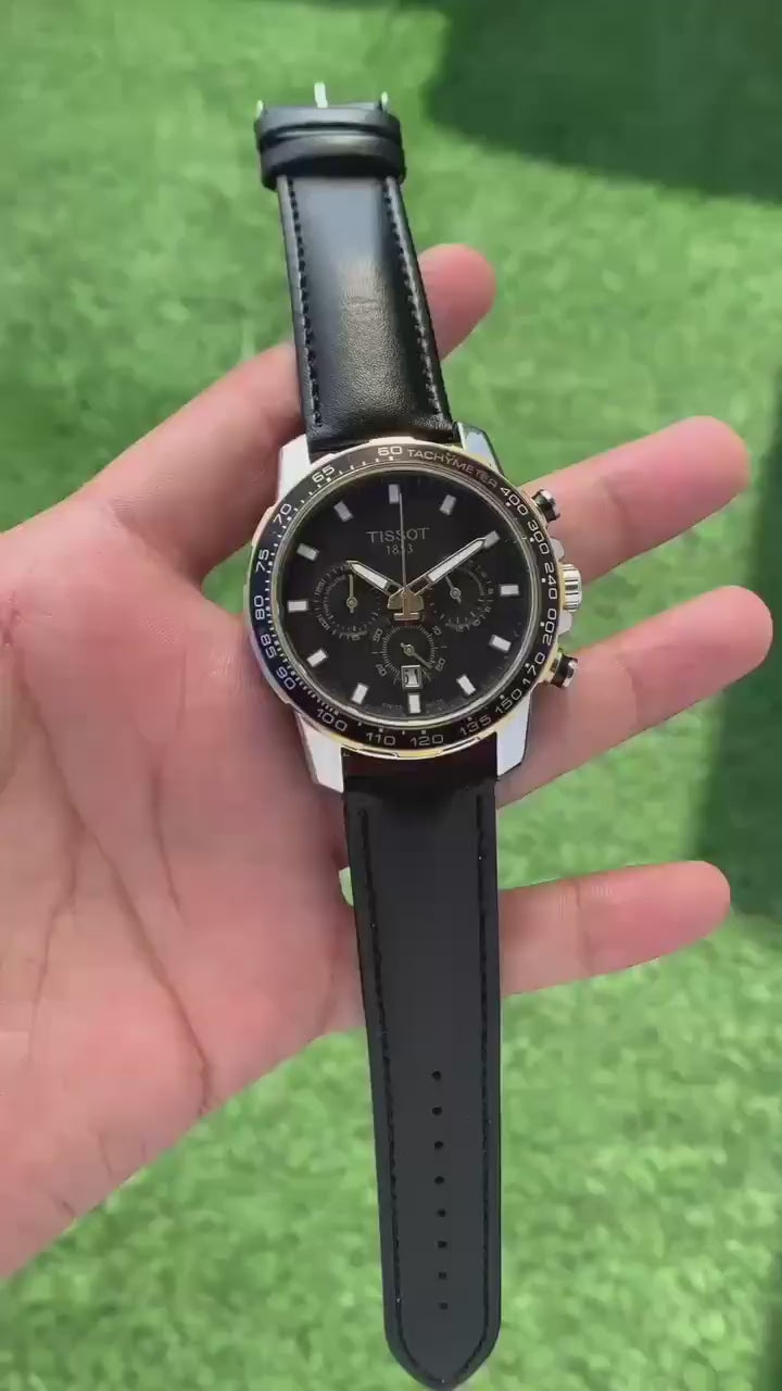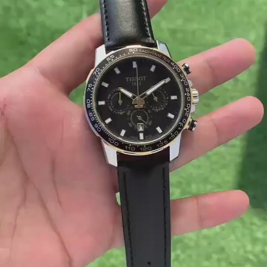 With a durable battery-operated quartz movement, fully functional chronograph stopwatch, and a bold black dial encased in a sturdy round stainless steel case, this watch doesn’t just tell time — it makes a statement. The genuine leather strap adds a touch of classic refinement, perfect for both boardroom and weekend wear.